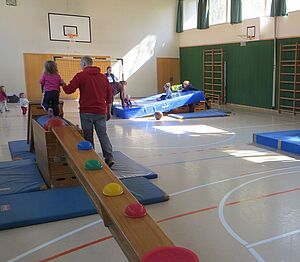 Viele Eltern wollen ihren Kindern Bewegungsangebote ermöglichen. Familien mit mehreren Kindern sind dabei schnell an der Grenze ihres Terminkalenders angelangt und kommen zudem häufig in Not, wo das Geschwisterkind untergebracht werden kann, wenn das andere Geschwisterchen gerade ein Angebot zusammen mit der Mama oder dem Papa wahrnimmt. Bewegungsangebot, die ein gemeinsames Erleben für mehrere Familienmitglieder zeitgleich ermöglichen, sind dabei die Ausnahme. Hier wollten wir mit unserem Angebot die Lücke füllen. Eine wohlüberlegte Bewegungslandschaft bietet zeitgleich Bewegungsimpulse für Kinder unterschiedlichen Alters. So können die Familien wertvolle Anregungen zur Bewegungsentwicklung erfahren und sich zeitgleich als Familie erleben.